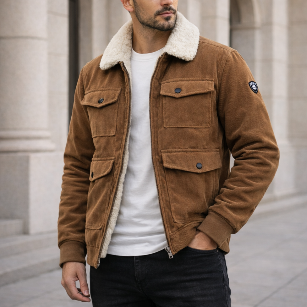 Crafted from premium corduroy and finished with an ultra-soft sherpa lining, the Sam Corduroy Jacket delivers reliable warmth without weighing you down. It’s designed for bitter days when you want insulation you can feel, but a look that stays clean and confident.