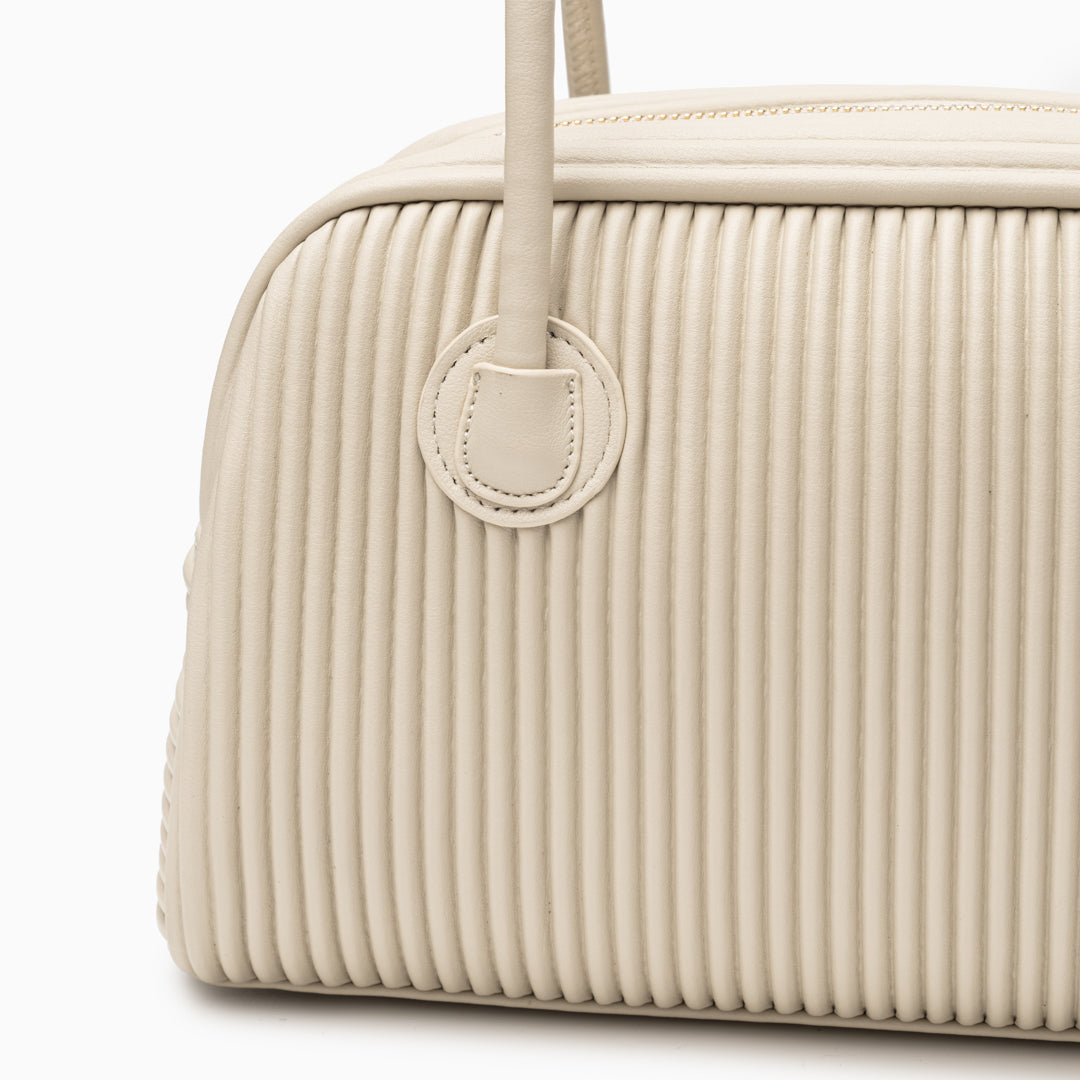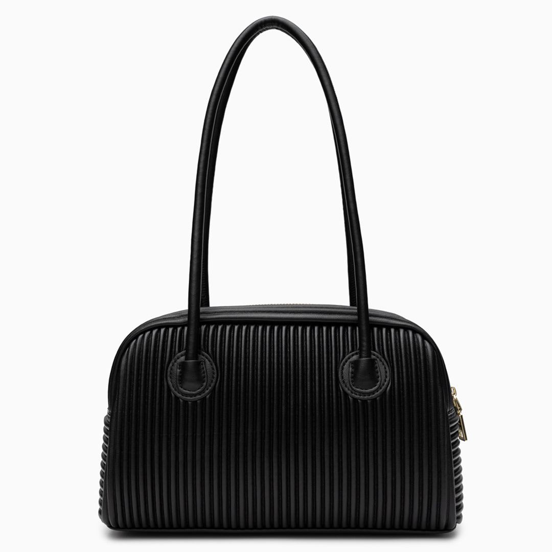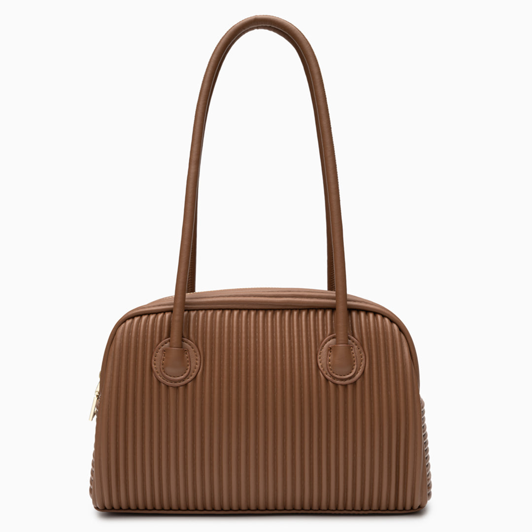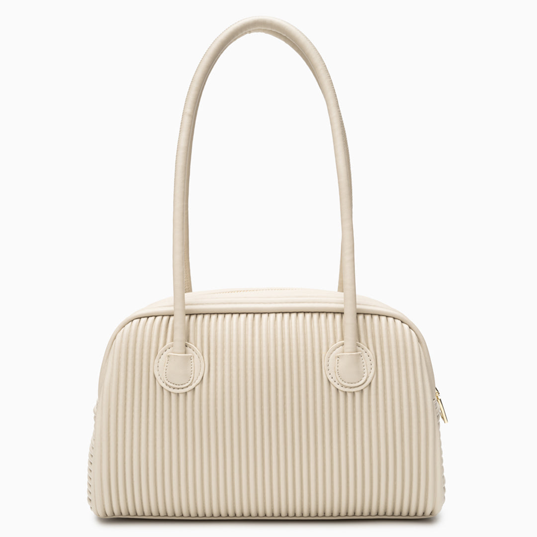 Seraphine Pleated Shoulder Bag exudes contemporary sophistication with its sculpted silhouette and refined vertical pleats. Crafted from smooth, it offers a polished look that transitions seamlessly from day to night. The elongated top handles provide comfortable wear, while the structured body maintains its elegant shape.