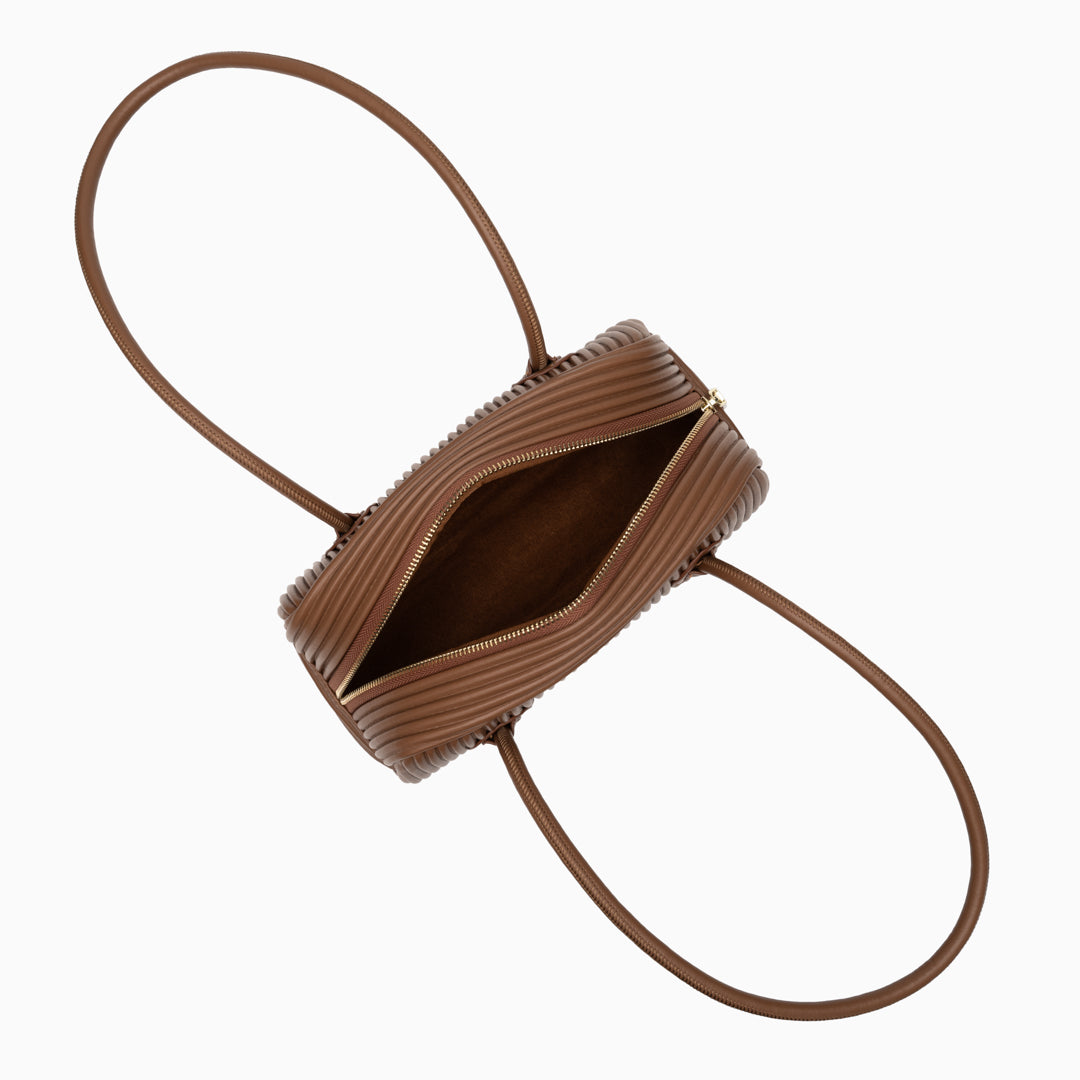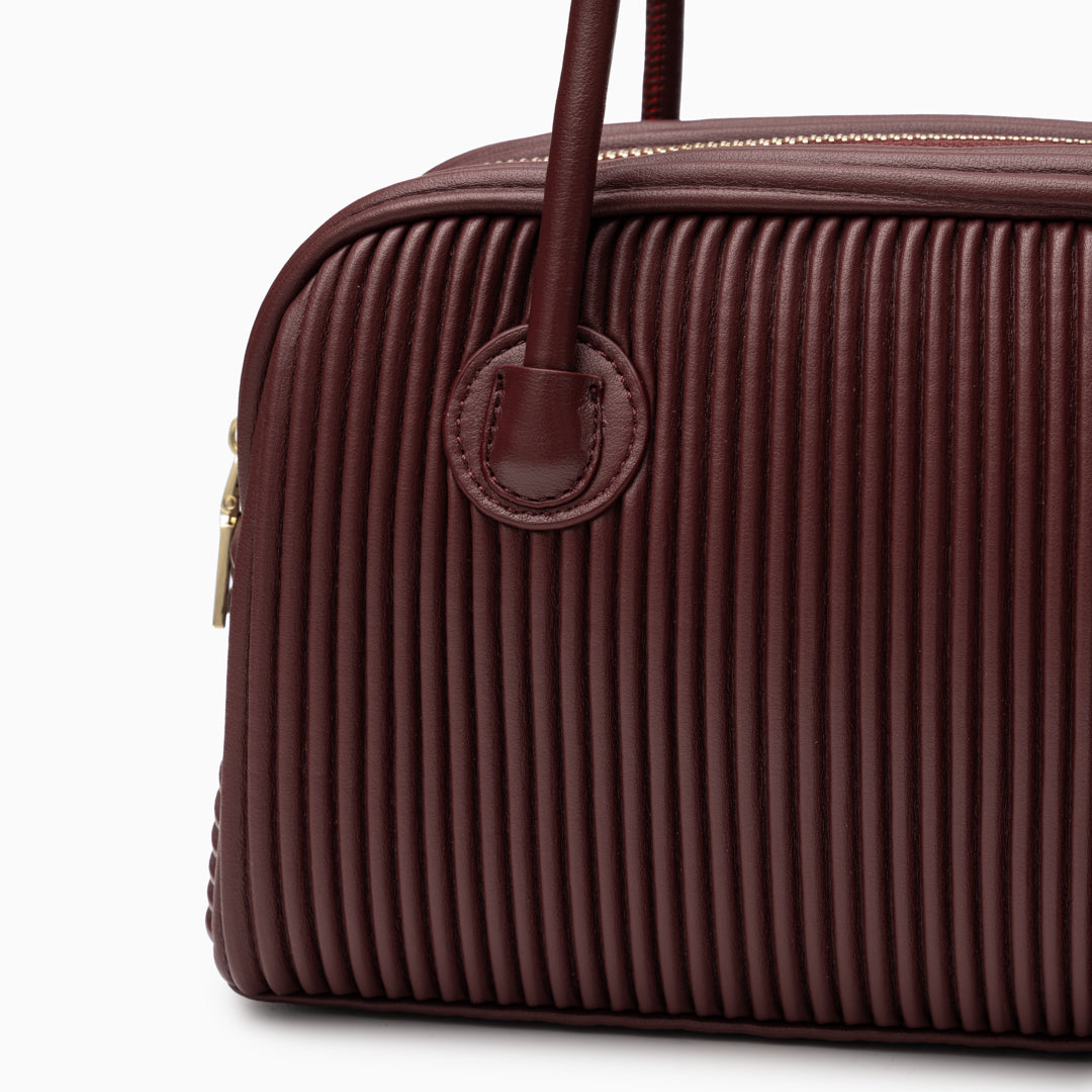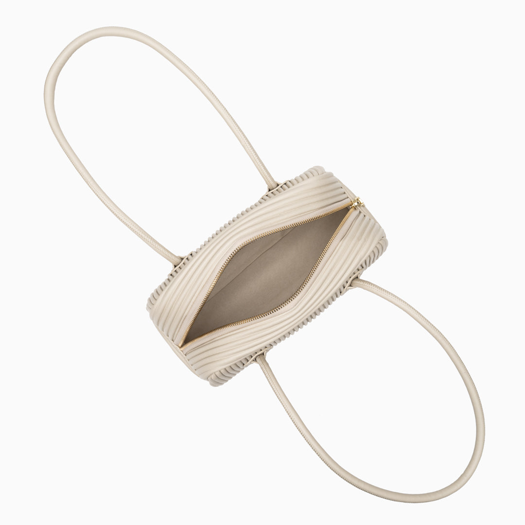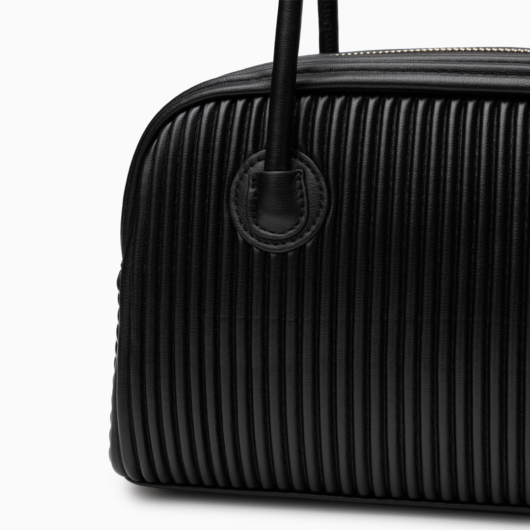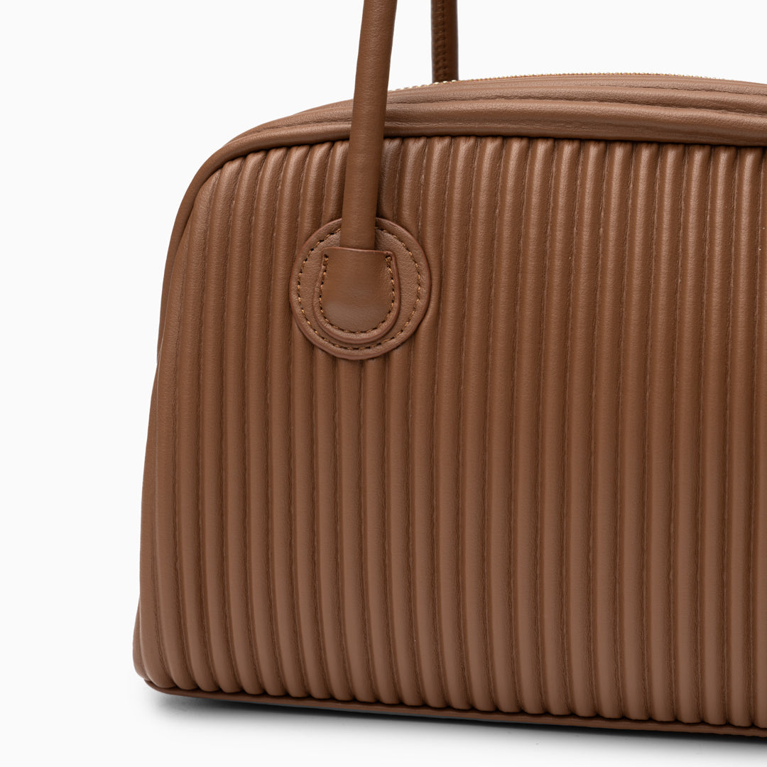 Seraphine Pleated Shoulder Bag exudes contemporary sophistication with its sculpted silhouette and refined vertical pleats. Crafted from smooth, it offers a polished look that transitions seamlessly from day to night. The elongated top handles provide comfortable wear, while the structured body maintains its elegant shape.