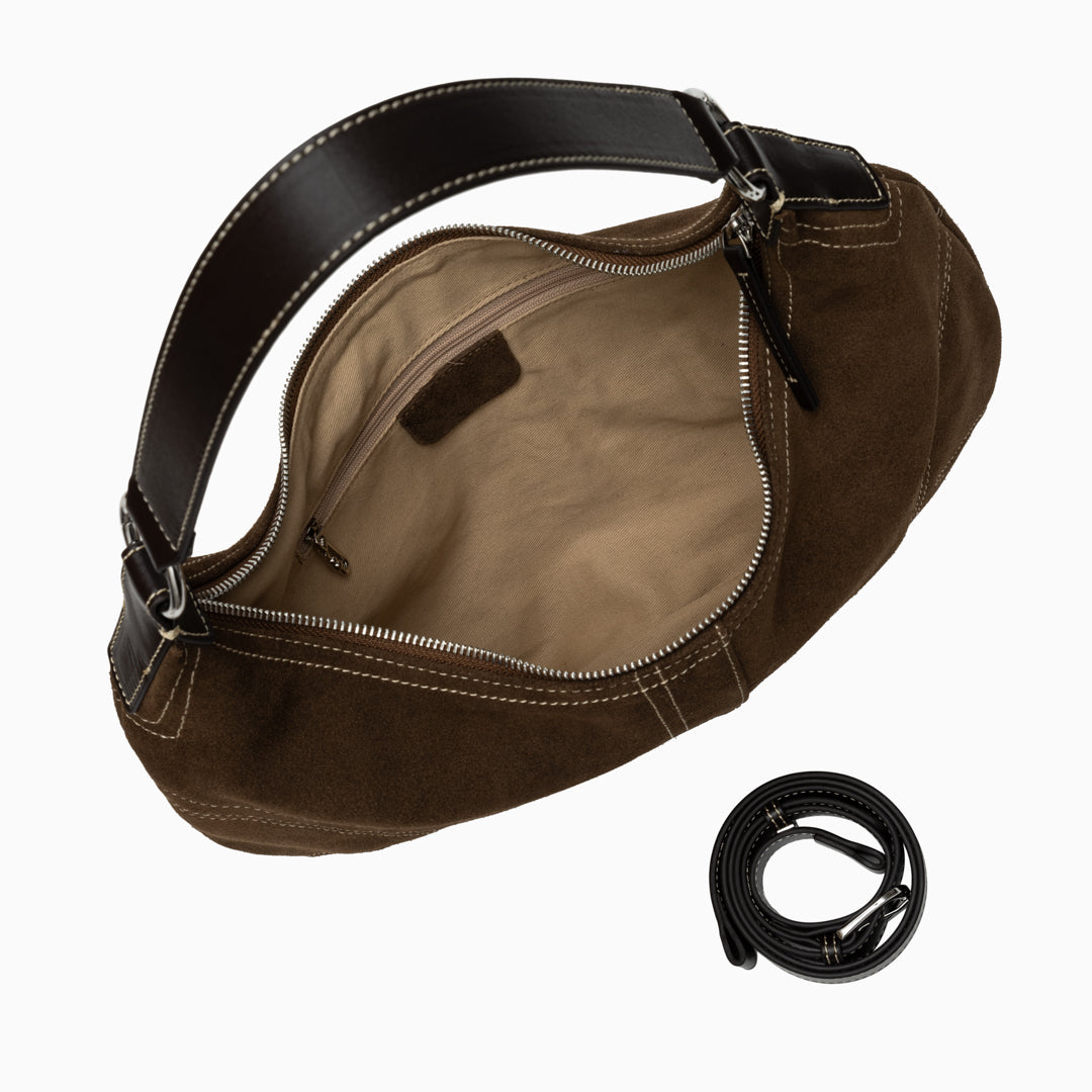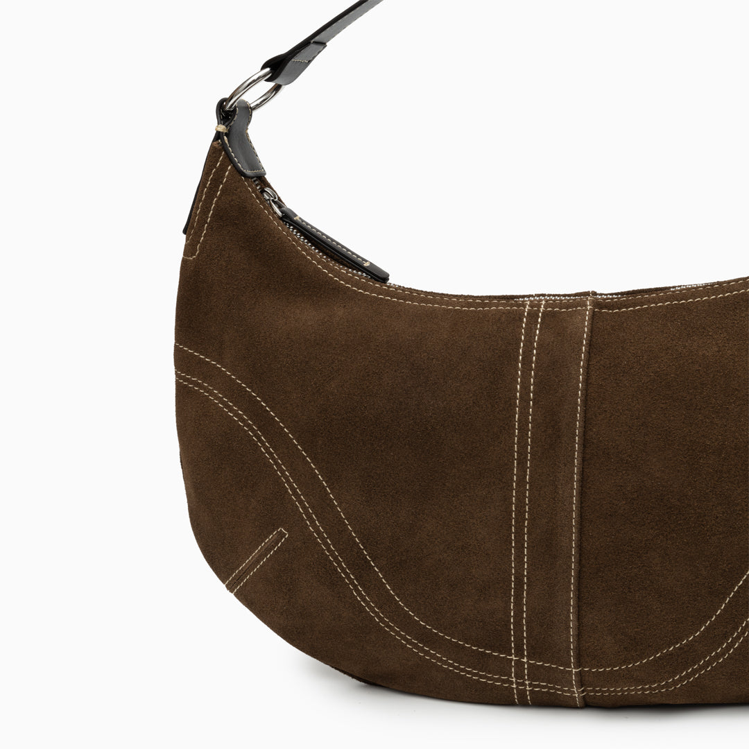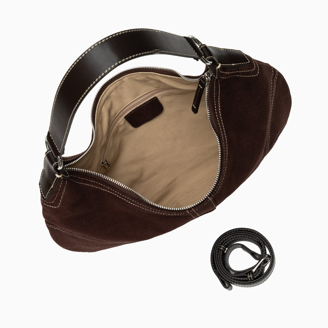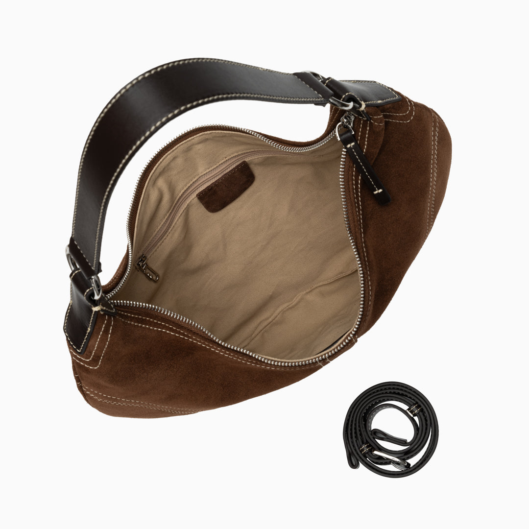 Verona Suede Shoulder Bag embodies understated luxury and effortless sophistication. Designed with a sleek crescent silhouette, this hobo bag features soft suede craftsmanship accented by contrasting topstitching for a refined touch. Its spacious interior offers ample room for everyday essentials, while the adjustable shoulder strap allows for versatile wear. Whether carried by hand or over the shoulder, the Verona blends classic craftsmanship with modern elegance — perfect for the woman who values both style and comfort.
